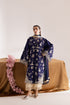 Navy blue embroidered cotton shirt paired with contrast culottes and a chiffon dupatta featuring lace and fabric detailing.
